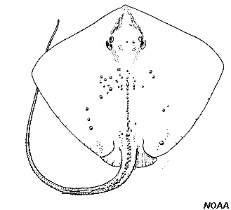 This ray was originally described as Raja centroura (Mitchill, 1815), but was changed to Dasyatis centroura (Mitchill, 1815). Dasyatis is derived from the Greek word “dasys” which means rough, and centroura is derived from the Greek word “centoro” which means pricker. In the past it has also been referred to as Dasyatis aspera Cuvier 1816, Pastinaca aspera Cuvier 1815, Trygon aldrovandi Risso 1827, Raia gesneri Cuvier 1829, Trygon brucco Bonaparte 1834, Trygon thalassia Muller and Henle 1841, Dasyatis hastata non DeKay 1842, Pastinaca hasta non DeKay 1842, Pastinaca acanthura Gronow 1854, Trygon spinosissima Duméril 1865, and Dasybatus marinus Garman 1913.