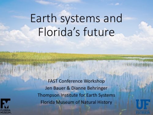 The goal of the workshop was to provide teachers with background content on the various Earth systems and how they can begin to think about them in the context of Florida. During the presentation, we passed out BINGO cards for teachers to identify key words or phrases during the presentation. When a participant got BINGO, they could say each of the terms and then describe how they are connected in the broader sense of Earth systems. This was remarkably fun and a simple way to get audience participation during the workshop.