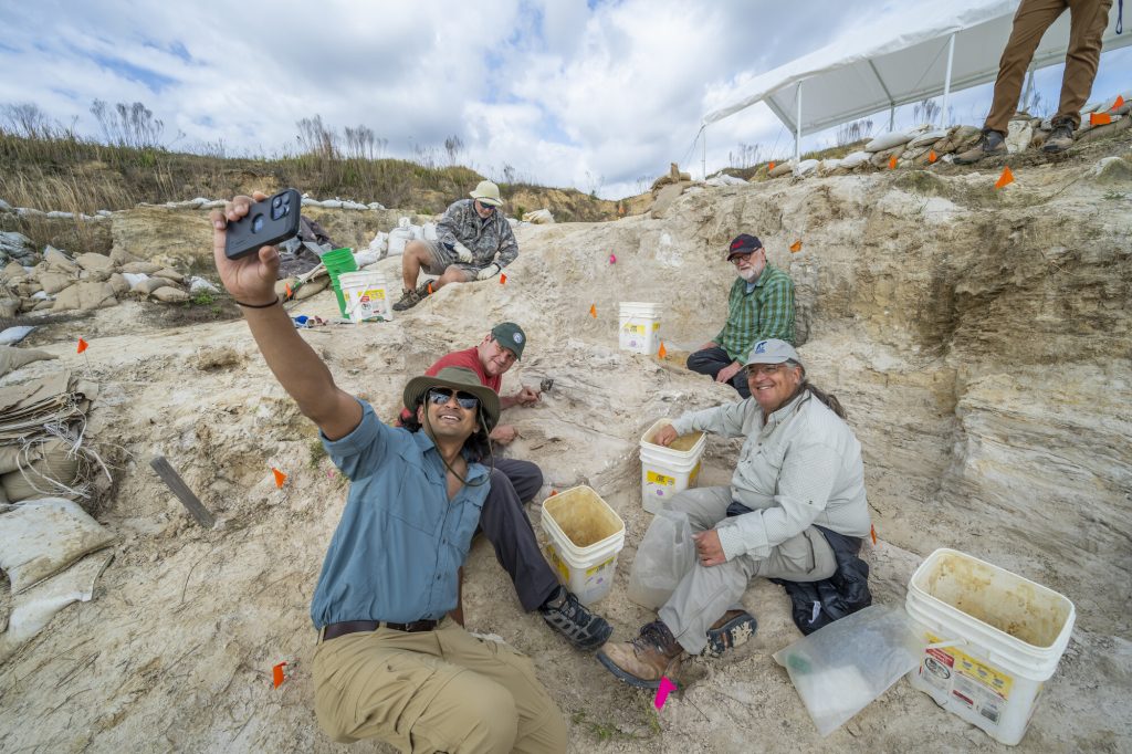 Jon Bloch and Advait Jukar, curators of our vertebrate paleontology collection, hosted a dig day at Montbrook to bring our guests into the sunbaked pit. Our active dig site is often scattered with clusters of volunteers patiently brushing and picking their way into the gritty soil as familiar shapes emerge. Thousands of hours of work by hundreds of hands have brought a vast library of fossils from this unassuming tract of earth.