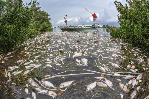 Algae blooms throughout the state over the past 12 months have caused the deaths of thousands of sea animals and forced the closure of many South Florida beaches, affecting businesses and tourism. Heavy bloom outbreaks are known to especially affect those with asthma and skin or other allergies. According to the National Oceanic and Atmospheric Administration’s National Ocean Service, the red tide bloom has stretched for more than 150 miles along the southwest coast of Florida from Pinellas to Collier counties.