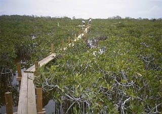 Due to the increasing pressure from rapidly expanding development along the coast of Florida, it is critical that mangrove habitats are protected from further destruction. Mangroves, seagrass beds, and coral reefs are all dependent upon one another, providing habitat for many aquatic plants and animals including those that are endangered and threatened. Mangroves also provide shoreline stability and protection from storm surge and erosion. These roles all support the local economies of many south Florida communities.