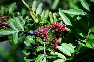 The Brazilian pepper (Schinus terebinthifolius) is a particularly invasive species. It was originally introduced as a landscape ornamental, and has spread rapidly through seed dispersal by birds.