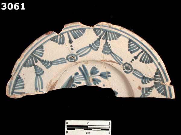| Comentarios: | Catalonia blue-on-white majolica was influenced by Italian majolica, French faience, and Dutch delftware. In this respect it resembles eighteenth century Talaveran majolica. All of the various design configurations date to the last quarter of the eighteenth century, however the marly panels and cherries are thought to appear occur closer to the beginning of the nineteenth century. |