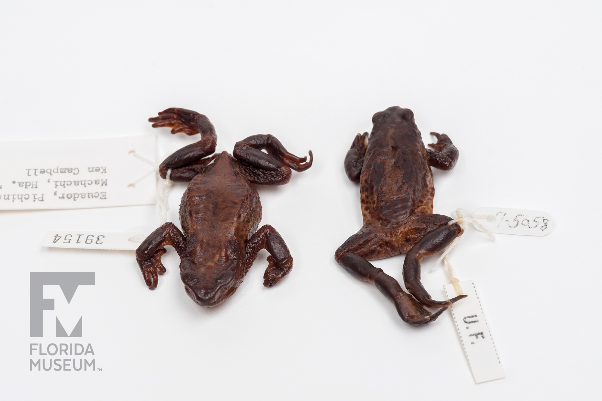 The Jambato Toad has been hard-hit by the epidemic spread of the fungus causing the decline and extinction of many amphibians. Though once declared extinct, scientists are working to breed recently discovered populations for conservation. Their future remains uncertain.