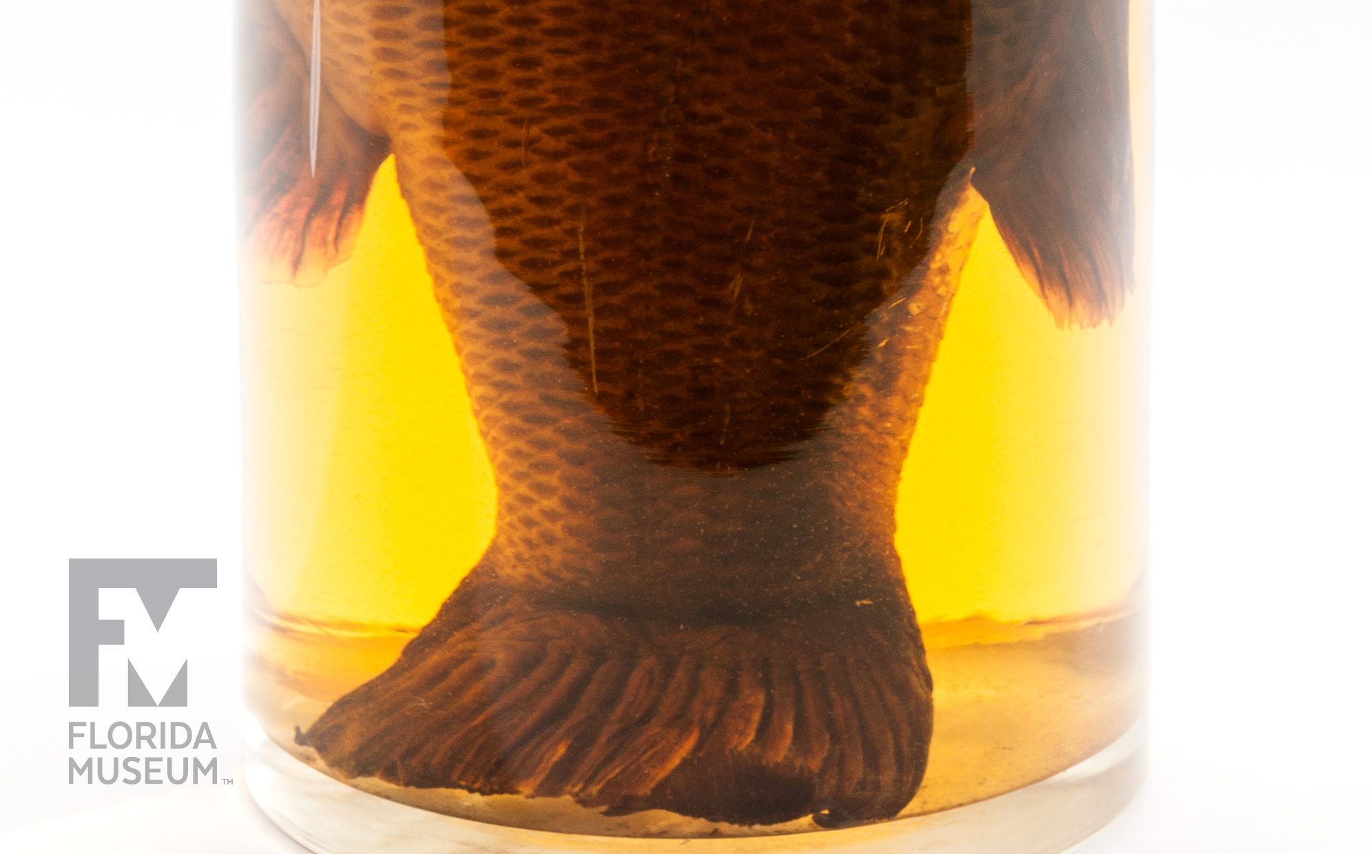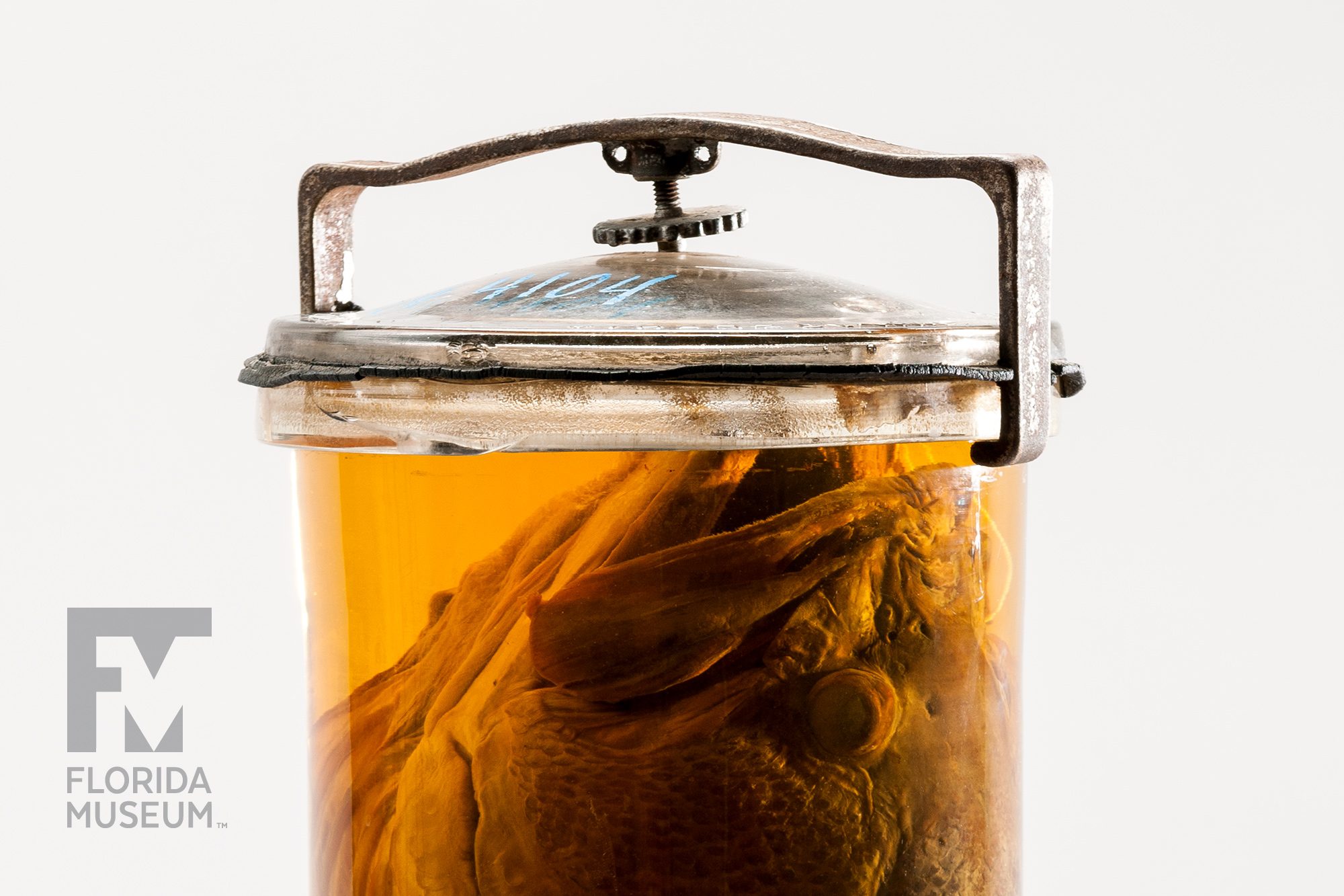 The Largemouth Bass has tremendous importance to the state of Florida: it is the state fish and the backbone of the freshwater component of Florida’s $5.1 billion fishing industry. This historical specimen of Largemouth Bass was collected from the Ocklawaha River on Jan. 6, 1932. It is among one of the earliest fish in the Museum’s fish collection, and for its large size, would represent a prized catch among fishermen today.