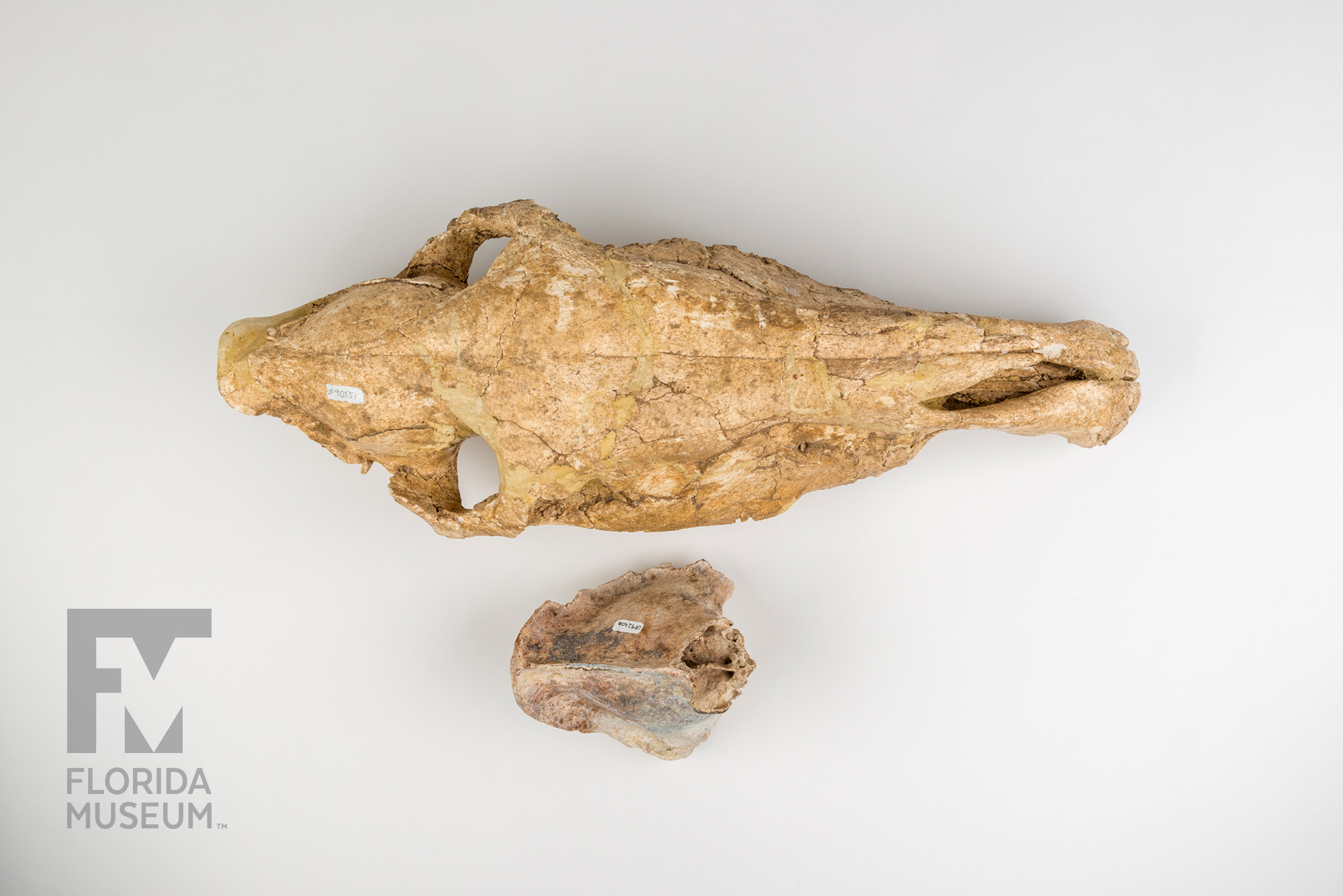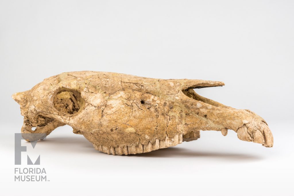 In addition, the Saber-toothed Cat skull that you see here represents an animal that, along with horses, also migrated into South America across the Isthmus of Panama during what’s called the Great American Biotic Interchange.