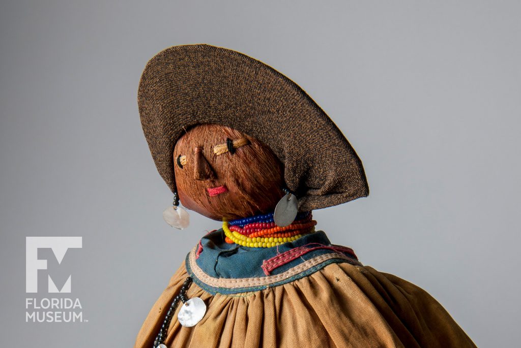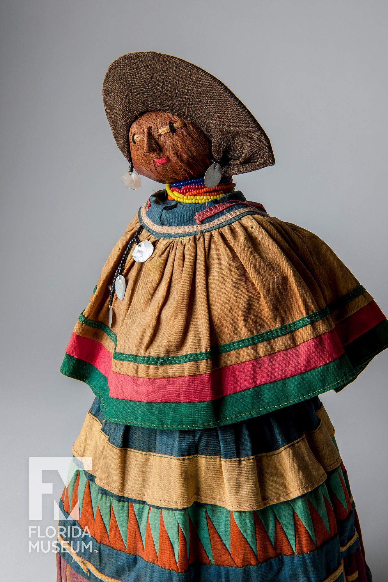 Seminole dolls portray clothing and hairstyles worn by traditional Seminole men and women, with cotton “patchwork” cloth wrapped around palmetto fiber bodies. The Museum’s doll collection is among the largest in the world, many gifted by Anne and Charles Reynolds.