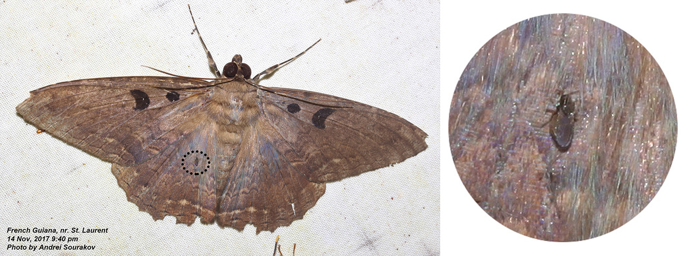 To view larger and additional images of midges and mites on tropical moths, see the gallery below.