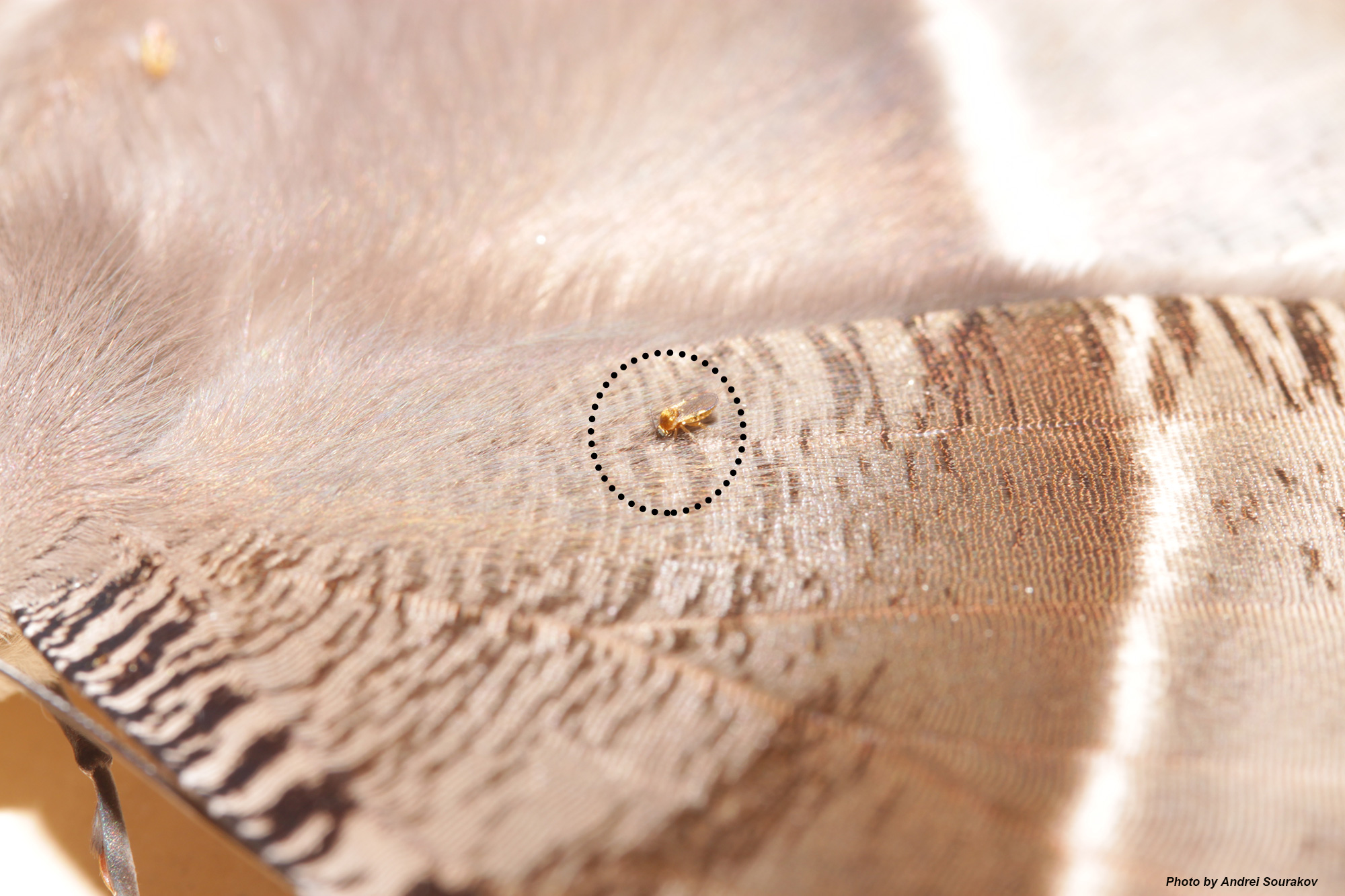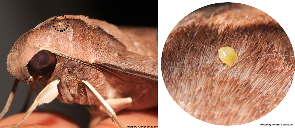 Among other such post-processed discoveries were mites feeding on an equally large sphinx moth. What the mites get out of their association with the Sphingidae is not entirely understood, but they are frequently found on these fast-flying moths.