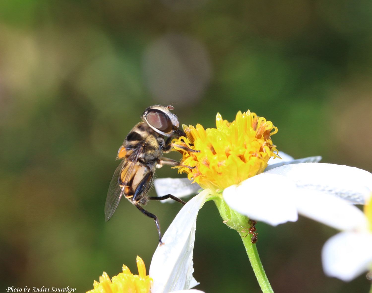 This is an Asteraceae plant, which means that its “flower” is a bunch of yellow florets bundled together and surrounded by common petals, each producing its own nectar. This allows the bidens flower to be continuously attractive to the pollinators – florets time nectar production so that nectar is almost always in some supply.