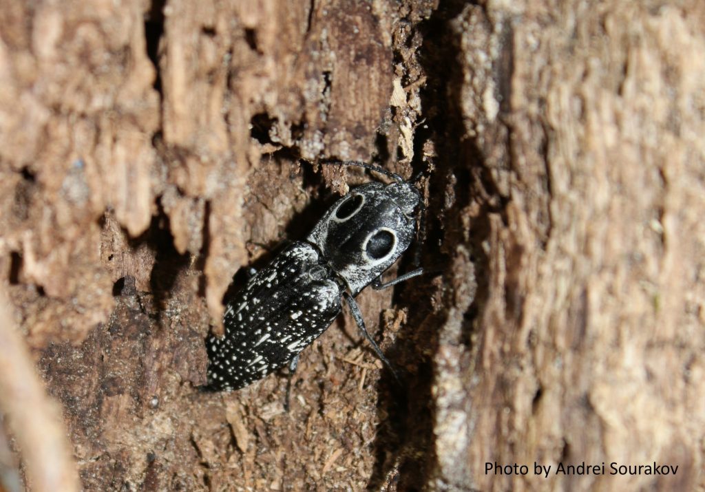 This female eastern eyed click beetle was laying eggs into still-living but rotting laurel oak tree. The eyespots are meant to scare away predators by creating an illusion.