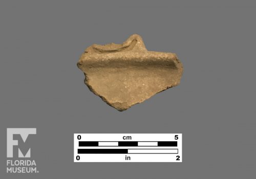 Chicoid rim sherd with a lug handle appliqué. Recovered in Banes, Cuba. FLMNH Catalog # 91095, Caribbean Archaeology collection.