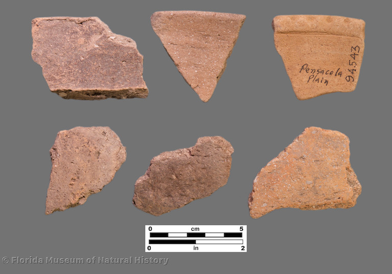 Pensacola Incised, body sherds and lug (Alabama)