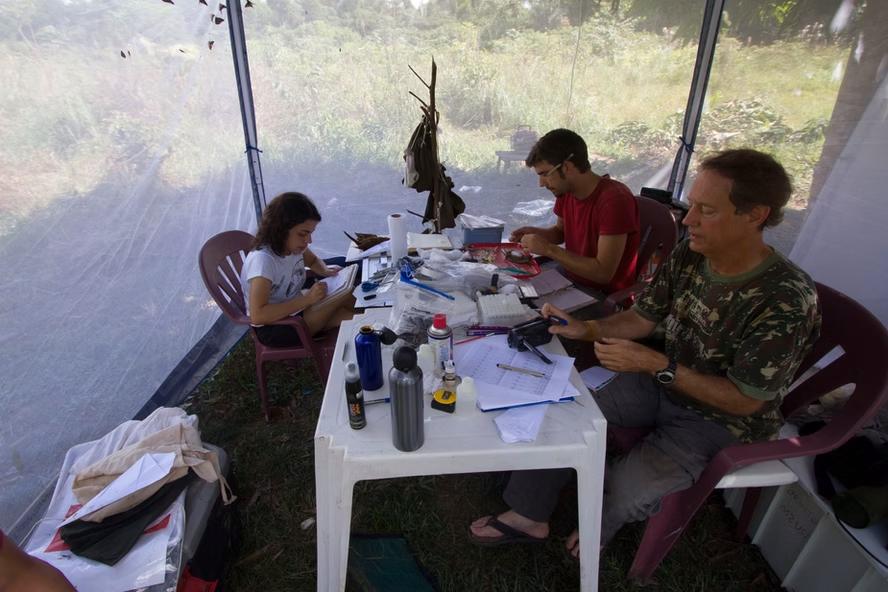 Prepping birds in Amazonia with Ryan Terrill and Bret Whitney! I participated in many expeditions of general collecting in the Amazonian Forest! Photo courtesy of Glaucia Del-Rio