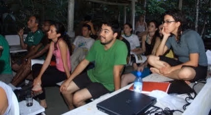 Watching a lek of Rupicola rupicola north of Manaus, Brazil! Photo courtesy of Glaucia Del-Rio