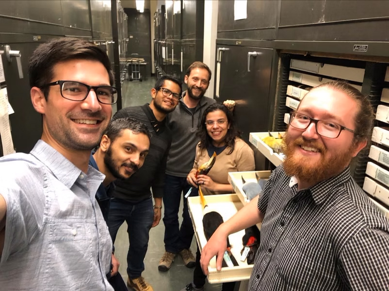 Baton Rouge, 2015, Imagine the best ornithology class someone could have? Van Remsen would take us to the LSU collection and spend hours talking about birds! So cool to be part of this with amazing researchers such as Vitek Jirinec, Jessica Oswald, Carl Oliveros, and Lisa Elisondo (from left to right). Photo courtesy of Glaucia Del-Rio