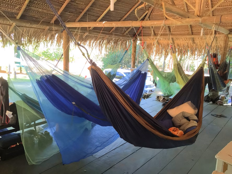 A fancy camping site in 2016. Usually we just hang our hammocks anywhere, but here we had this nice bungalow. Photo courtesy of Glaucia Del-Rio