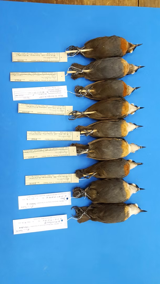 After collecting birds in the field, we bring them back to museum collections. In the collection, we use specimens for collecting morphology, plumage coloration, and many other kinds of data. Here I am using a studio to photograph Rhegmatorhina specimens! Photo courtesy of Glaucia Del-Rio