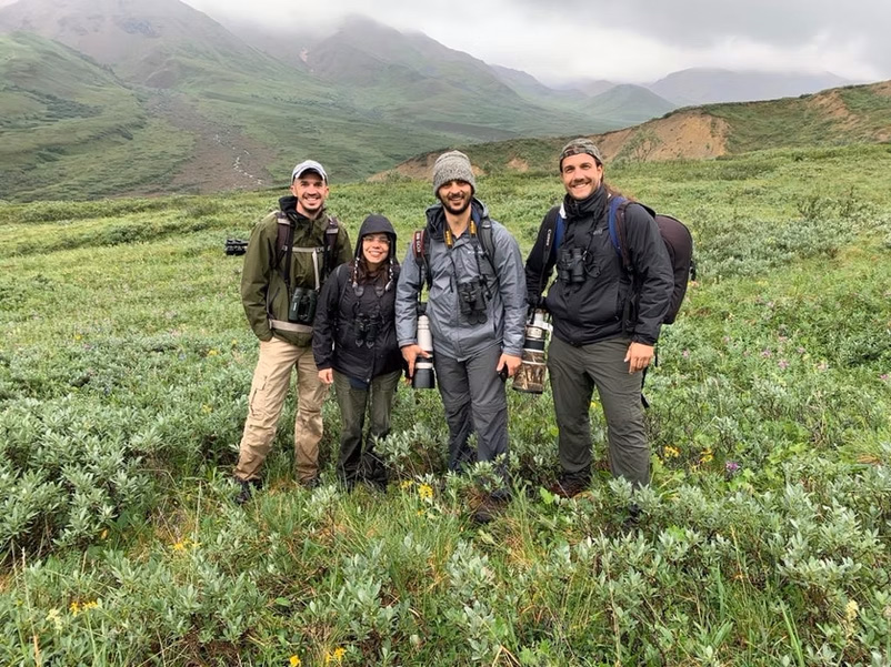 With my friends Cameron Rutt, Fabio Schunck, and my husband Marco Rego, few minutes before we would have a cool encounter with a mother bear and its two cubs! Photo courtesy of Glaucia Del-Rio