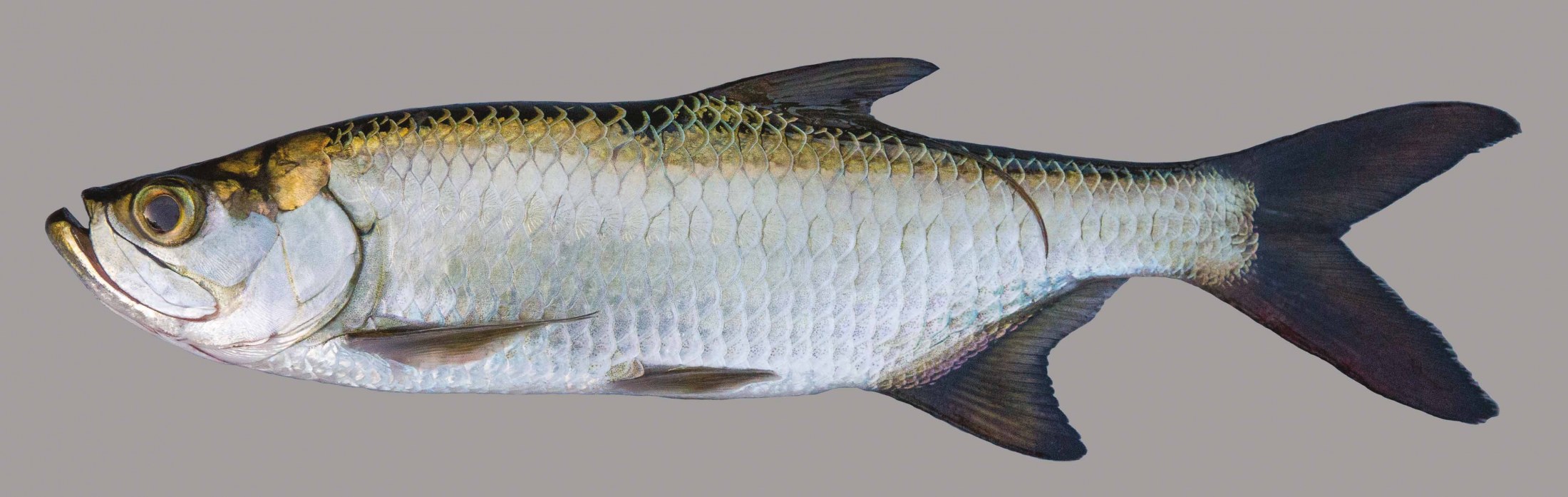 Tarpon have projecting lower jaws and dorsal fin bases above the area between their pelvic and anal fin bases. Members of the tarpon family, they are a marine species frequently found in canals. Juveniles can be found in rivers, including those that are far inland.