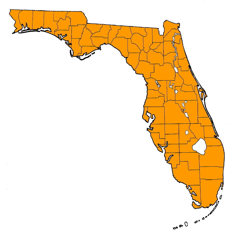 - Mainly the southeastern United States (west to the Mississippi River and north into Virginia)