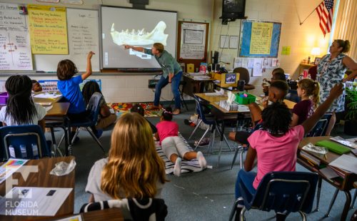 Vertebrate paleontologist and UF Zoology PhD student Sean Moran visited the 4th grade classes of Alachua Elementary School on Tuesday October 8th. Sean used anecdotes and specimens from his field work in Nebraska to discuss the differences between observation and inference.