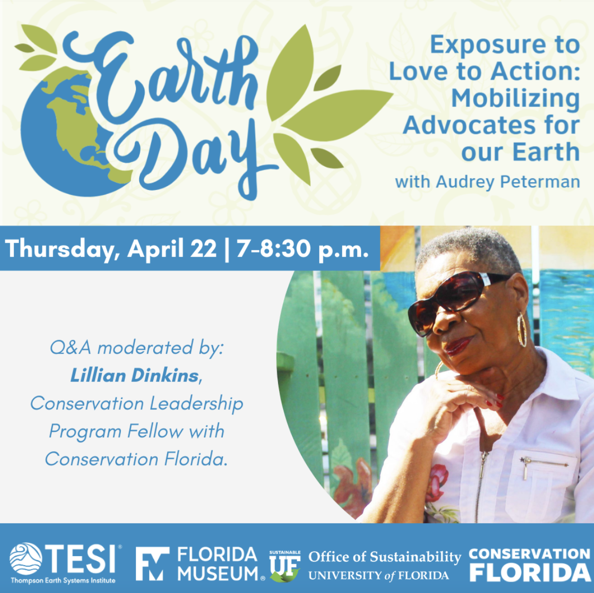 In the Earth Day webinar “Love to Exposure to Action: Mobilizing Advocates for our Earth,” Peterman served as the keynote speaker to a virtual audience across Florida. She spoke of change, conservation and the mischaracterized history of preserving outdoor spaces in the United States.