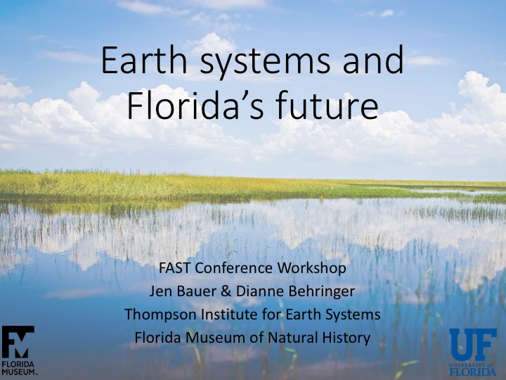 The goal of the workshop was to provide teachers with background content on the various Earth systems and how they can begin to think about them in the context of Florida. During the presentation, we passed out BINGO cards for teachers to identify key words or phrases during the presentation. When a participant got BINGO, they could say each of the terms and then describe how they are connected in the broader sense of Earth systems. This was remarkably fun and a simple way to get audience participation during the workshop.