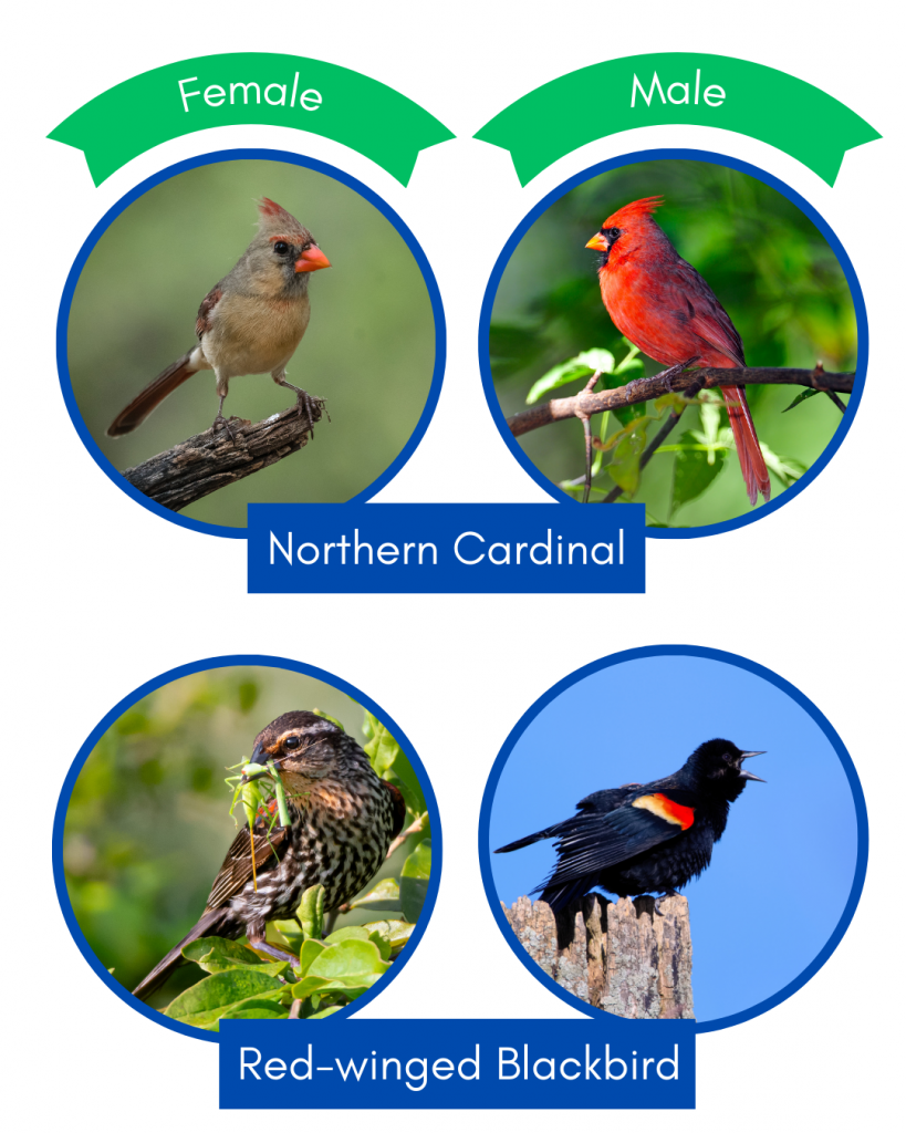 Here are a few birds found in Florida that consistently exhibit sexual dimorphism through their plumage (click on the images to view them larger):