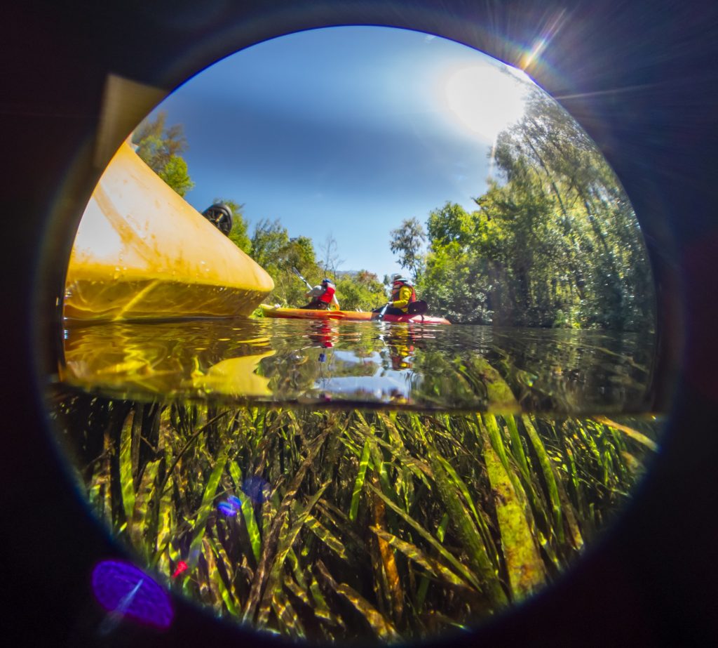 As they paddled through the crystal clear water and tried not to disturb the sediment and vast swaths of vibrant green eelgrass at the bottom, students got to talk with some researchers from the US Geological Survey and the Florida Department of Environmental Protection diving in a shallow area. Soon after, everyone had to carefully maneuver around a manatee and her calf grazing on some seagrass while getting close enough to get a good look. Seeing the vibrant ecosystems around North Florida was a highlight of the experience for all.