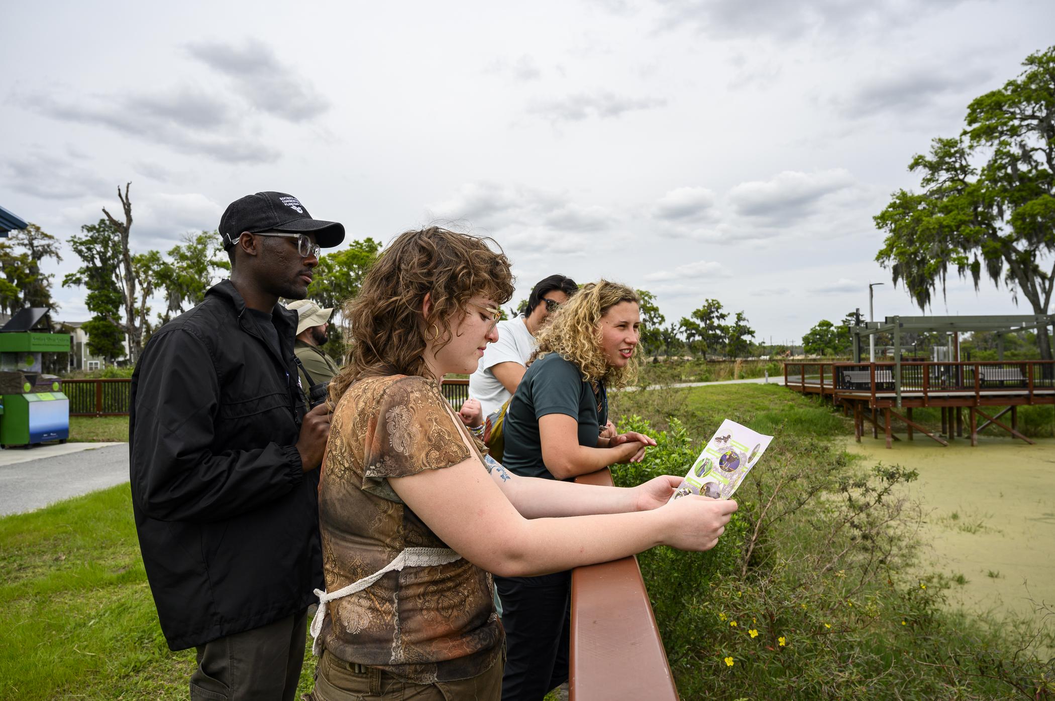 To round off the day, students visited the Cedar Key Railroad Trestle Nature Trail. Armed with the apps iNaturalist, Seek, and Merlin Bird ID, as well as binoculars, fellows captured visual and audio recordings of wildlife on their phones. They experimented with the accuracy of identifications and marveled at the biodiversity along the nature path.