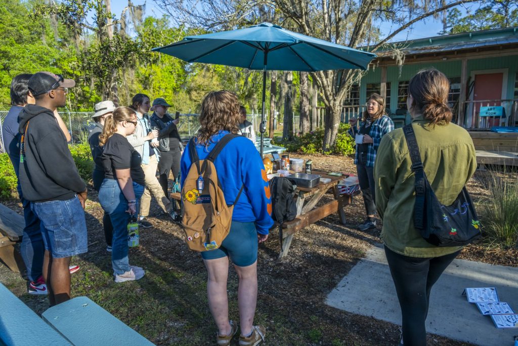 Fellows kicked off day two of the spring break field experience at Santa Fe River Preserve. Santa Fe River Preserve protects 1,067 acres on the banks of the Santa Fe River near Worthington Springs and is managed by the Alachua Conservation Trust, commonly known as the ACT. The ACT protects land through purchase, donation, and conservation easements in 16 counties. Ema Olmos, a conservation event coordinator with the Alachua Conservation Trust, met fellows at the trailhead and led a guided hike. Along the trail, fellows paused at various points to discuss the work that environmental nonprofits can accomplish. Olmos shared her own experiences working in youth outreach programs and shared her favorite ways to engage youth with the outdoors.