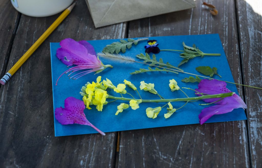 Using the seeds, flowers, and other plants from their scavenger hunt, the Fellows tapped into their inner artists and pressed them onto sun print paper, then left their creations out in the sun to develop.