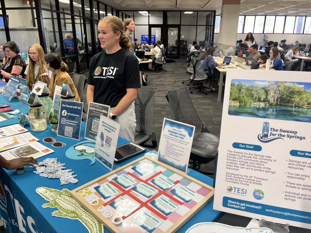 Florida’s springs are a vital natural resource that many UF students love to visit. To spread awareness about how to protect these unique ecosystems, TESI brought displays, fish specimens, and more to a pop-up exhibit at Marston Science Library as part of The Swamp for The Springs campaign. This event was hosted by UF’s Marston Science Library in partnership with the Florida Museum of Natural History.