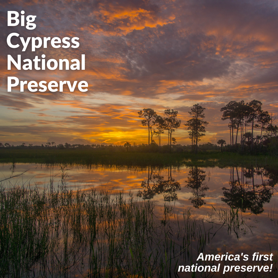 Did you know that America’s first national preserve is right here in Florida? One of the 11 National Parks in Florida is the Big Cypress National Preserve in Ochopee, South Florida! The freshwater in the Big Cypress Swamp supports the Everglades and the marine estuaries on the Southwest coast of Florida. At the preserve, you’ll find the American alligator, the endangered Florida panther, red mangroves, and many, many more animal and plant species. Hike, canoe, participate in one of the many ranger-led activities, or even stargaze as the preserve is a designated International Dark Sky Site! The area was originally inhabited by the Indigenous Calusa people, and later the Miccosukee and Seminole people as well. The Miccosukee and Seminole Tribes continue to call the preserve home and make use of its resources. Have you ever visited Big Cypress? Info from the National Park Service, image from the National Park Service.
