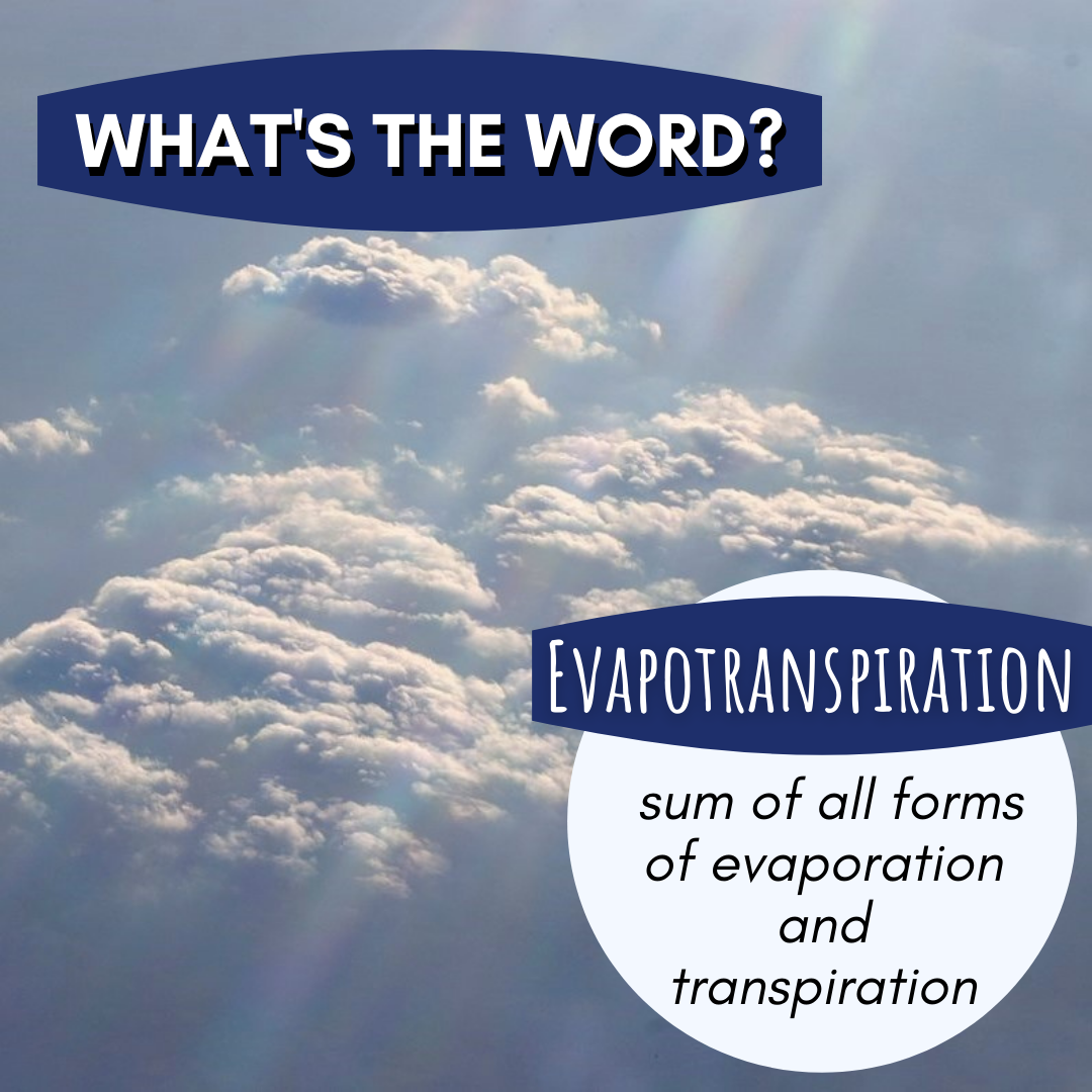 Evapotranspiration is a critical part of the water cycle. It is the sum of water that enters the atmosphere during evaporation and transpiration. During both processes, water changes from a liquid to a gas. Evaporation refers to the water coming from land surfaces and water bodies, while transpiration refers to the water from plants. Transpiration occurs when plants use their roots to absorb water from the soil and release excess amounts through their parts, especially their leaves. Many factors affect evapotranspiration rates, including temperature, humidity, wind, and moisture. Because of these relationships, evapotranspiration is necessary to determine and interpret climate change impacts. A central aspect of climate change is global warming. In Florida, these increasing temperatures cause increasing evaporation rates, leading to more intense rainstorms. However, in other areas, this very same factor leads to droughts. As increased evapotranspiration rates dry out soils, rainwater runs off the hard ground, enters nearby water bodies, and the soil stays dry. Info from U.S. Geological Survey and UCAR Center for Science Education. Images from Wikimedia users Wing-Chi Poon (CC BY-SA 3.0) and M. W. Toews (CC BY 4.0).