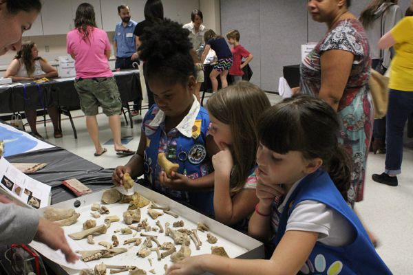 Environmental Archaeology Program at the She’s a Scientist event, Fall 2015. Graduate Student Arianne Boileau helps Girl Scouts identify ancient and modern animal remains, including actual bones recovered from the St. Augustine archaeological excavations.