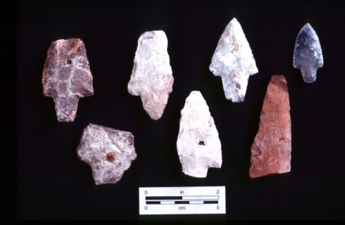 These represent part of the Archaic Period tool kit. They are dart points, spear points, and knives. It is likely that the stone came from nearby Marion County, Florida.