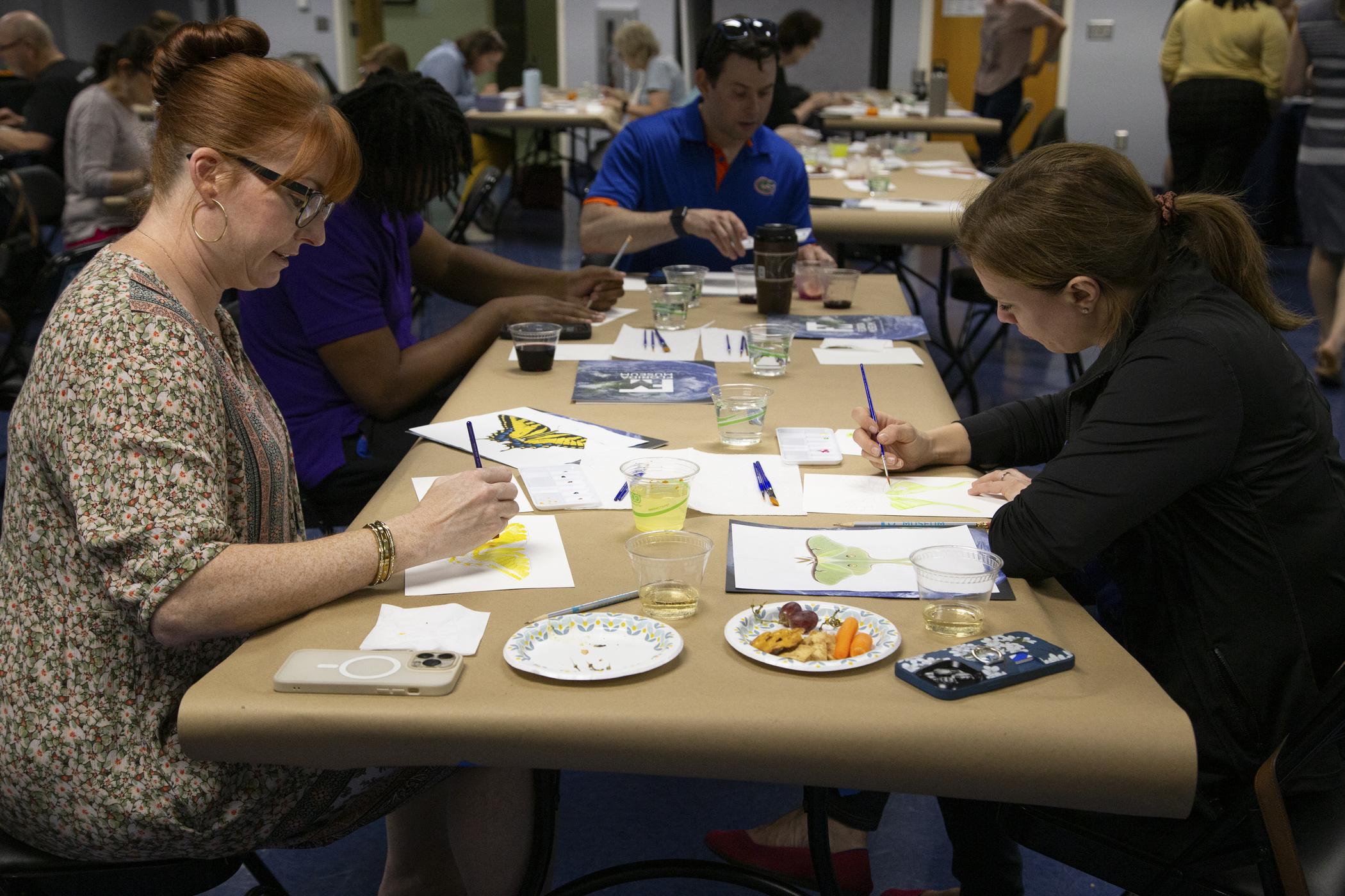 Led by Dale Johnson, our artistic team welcomed excited guests to explore iconic plants and animals, and then walked them through the tools, supplies, and painting process. Easy lessons included brush-and-paint handling, sketching a foundation, light table guidelines, and finishing off a painting.