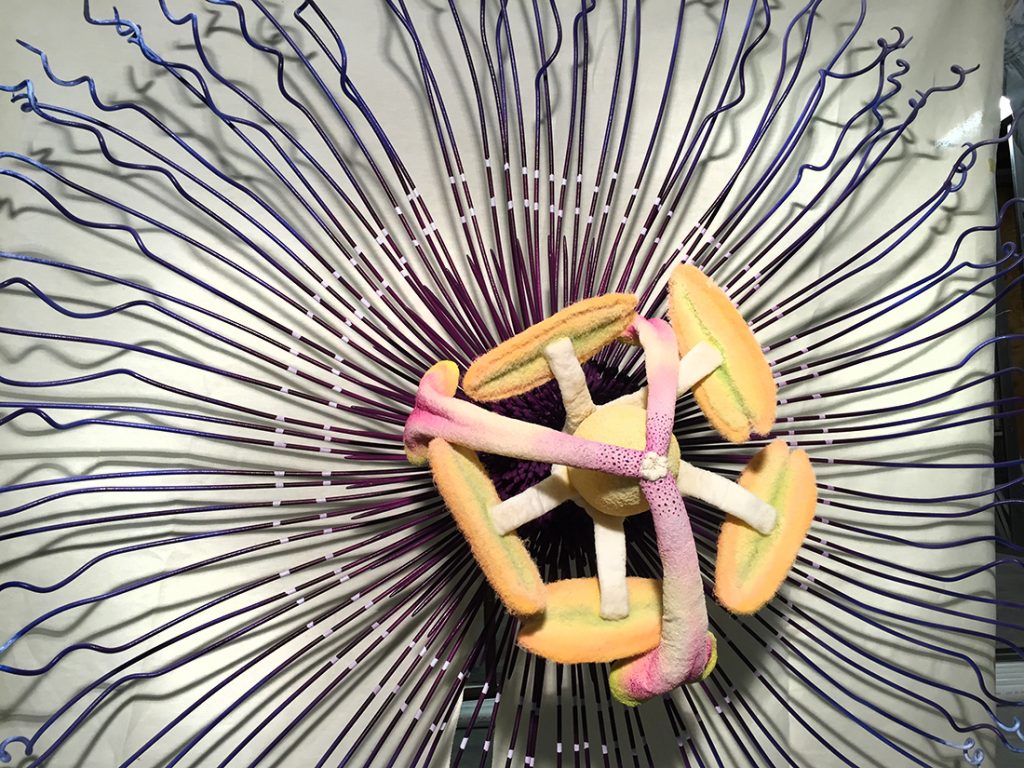 They’ve been working on the flower’s corona filament, the frondy, curly fringe around the center of the flower. The pretty filament on passion flowers helps guide insects and humming birds to the flower’s nectar, thus helping pollinate the flower.