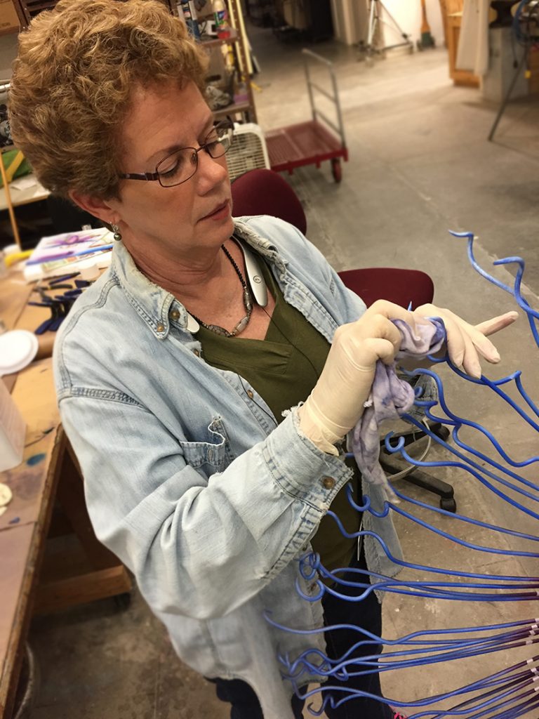 Our oversize version won’t be attracting huge butterflies (hopefully!), but we want it to look incredibly real. So our artistic fabrication team has spent hours applying layers of colors to the big filament wires, and then touching up the details by hand.