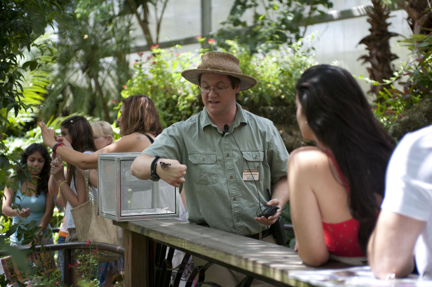 Some of our staff members have been here since the beginning. Jaret Daniels, curator at the Florida Museum’s McGuire Center, released some of the first butterflies into the exhibit in 2004 and he still takes visitors on tours to talk about butterflies.
