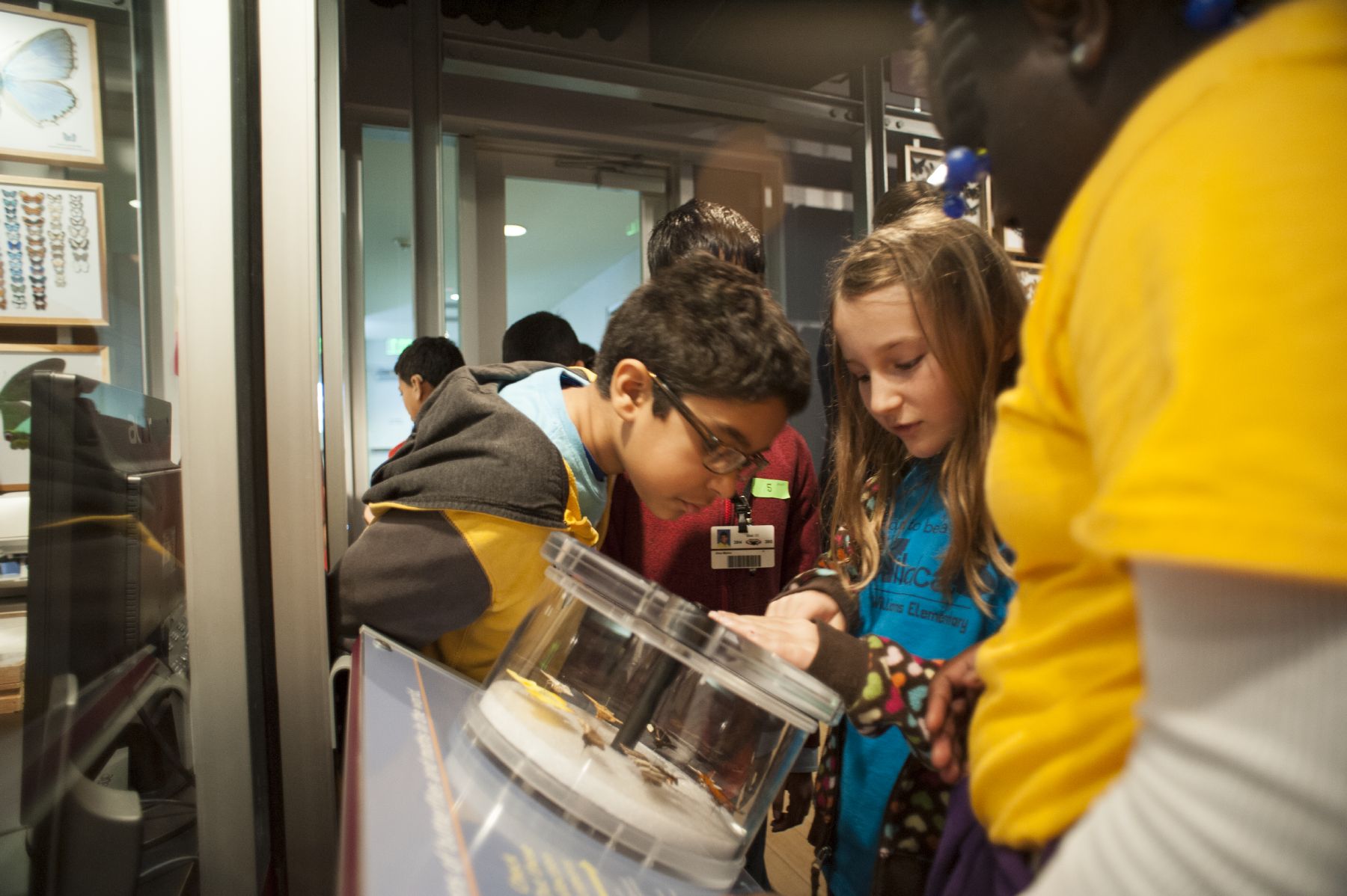 In addition to visiting the exhibit, school kids are shown our lab space to explore how scientists study butterflies with a goal of conservation of imperiled species. Florida Museum photo by Kristen Grace