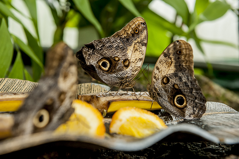 Caligo telamonius, called owl butterflies, are one of the species that feeds on the fruit our staff leave out daily for them to enjoy. Florida Museum photo by Sophia Zayas