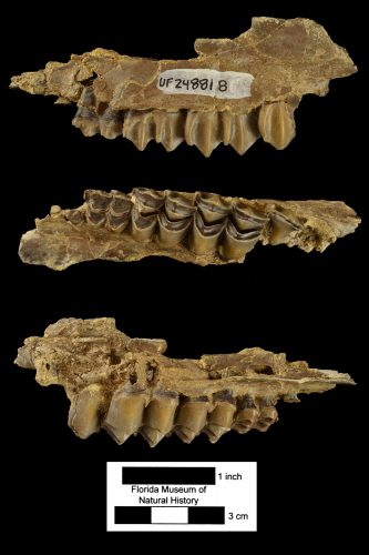 White’s bear-dog, Amphicyon longiramus, was the top carnivore in Florida 16 to 18 million years ago. Its closest modern ecologic equivalent is the grizzly bear. We have over 550 specimens of this species in our collections. Read more about this extinct bear-dog