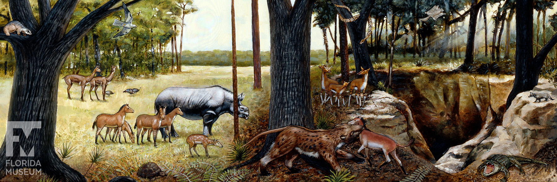 This painting was commissioned from artist Bob Beach for our Florida Fossils exhibit. Learn about the Miocene animals represented: