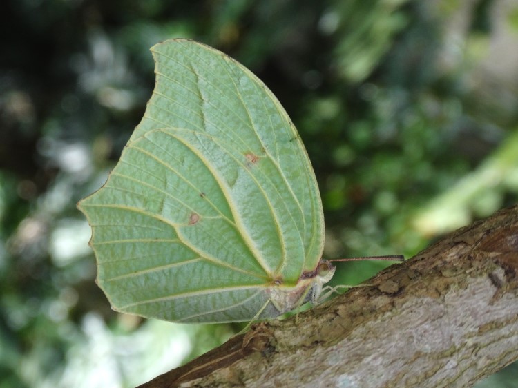 Our next leaf mimic prefers things on the lively side. This is the White-Angled Sulfur (Anteos clorinde), from the tropics of the new world. Like other sulfurs, they will not open their wings to bask, which is a shame because you miss the pale yellow punctuated by a large bright yellow spot on either forewing. Both of these species are out and about now and I can’t promise if they will become regulars once more or if this is your only chance to see them. However, if you get the chance, I recommend swinging by to admire their mimicry.