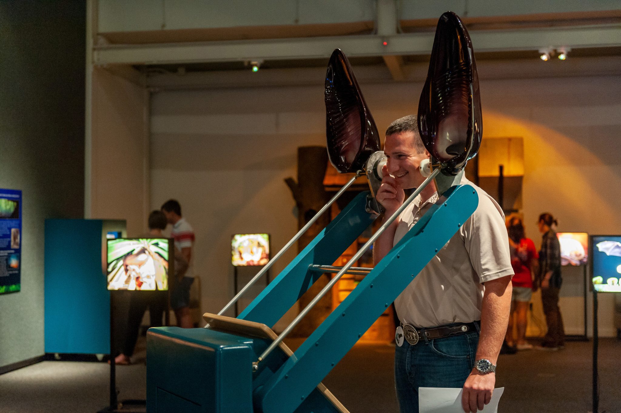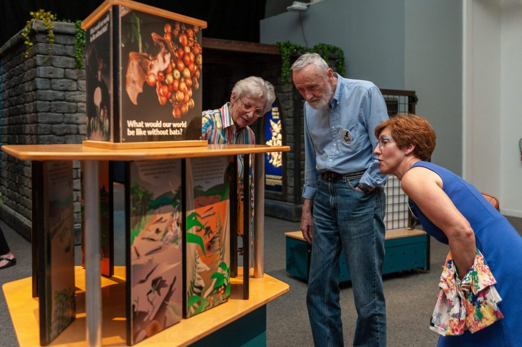 A Gothic-style castle setting invited visitors to experience the true nature of bats! Some of these displays included a world map where visitors guessed how many bats live in an area, a scale showing how much bats eat and a pair of ears visitors could use to hear like a bat. The exhibit attempted to dispel myths and inform guests about the ecological importance of the only true flying mammal.
