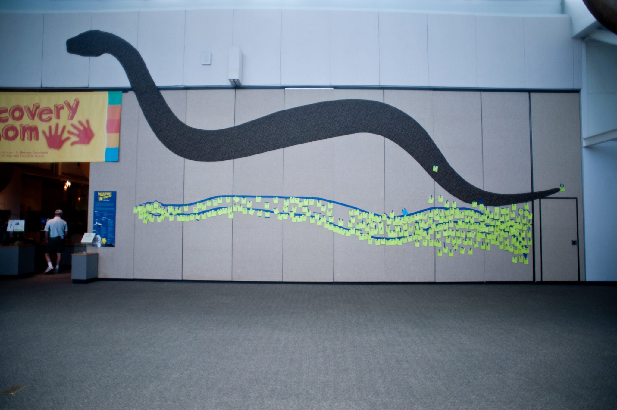 Featuring a full-scale model of Titanoboa and clips from a Smithsonian Channel documentary, the exhibit delved into the discovery, reconstruction and implications of this enormous reptile. Fossil plants and other animals found at the site revealed an early rain forest teeming with life and dating to the Paleocene, the lost world that followed the demise of the dinosaurs.