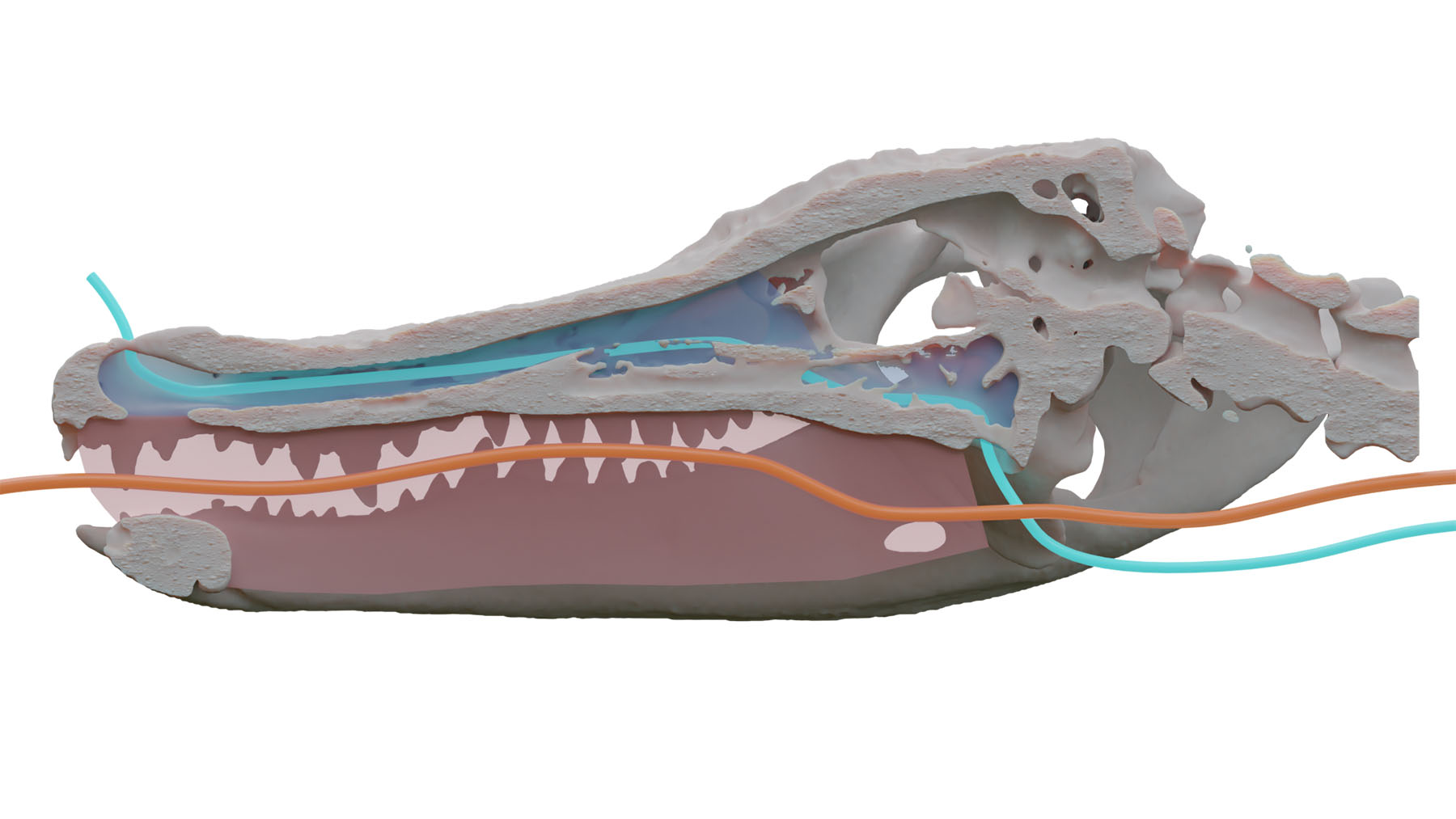Digital model created from CT data shows the air passageways of an alligator. Photo courtesy of Dominique Adriaens